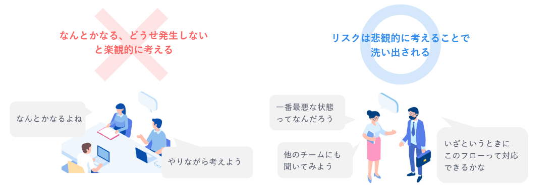 性悪説に立って「起きるかもしれない」「起きてしまったらどうなるか」をホラーストーリーで考えましょう。