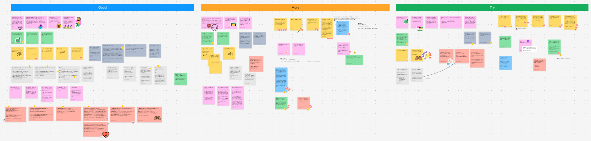 - ミーティング参加者は、発表者の話を聞きながら、気になる振り返り内容にスタンプを押したり質問事項をメモを残す