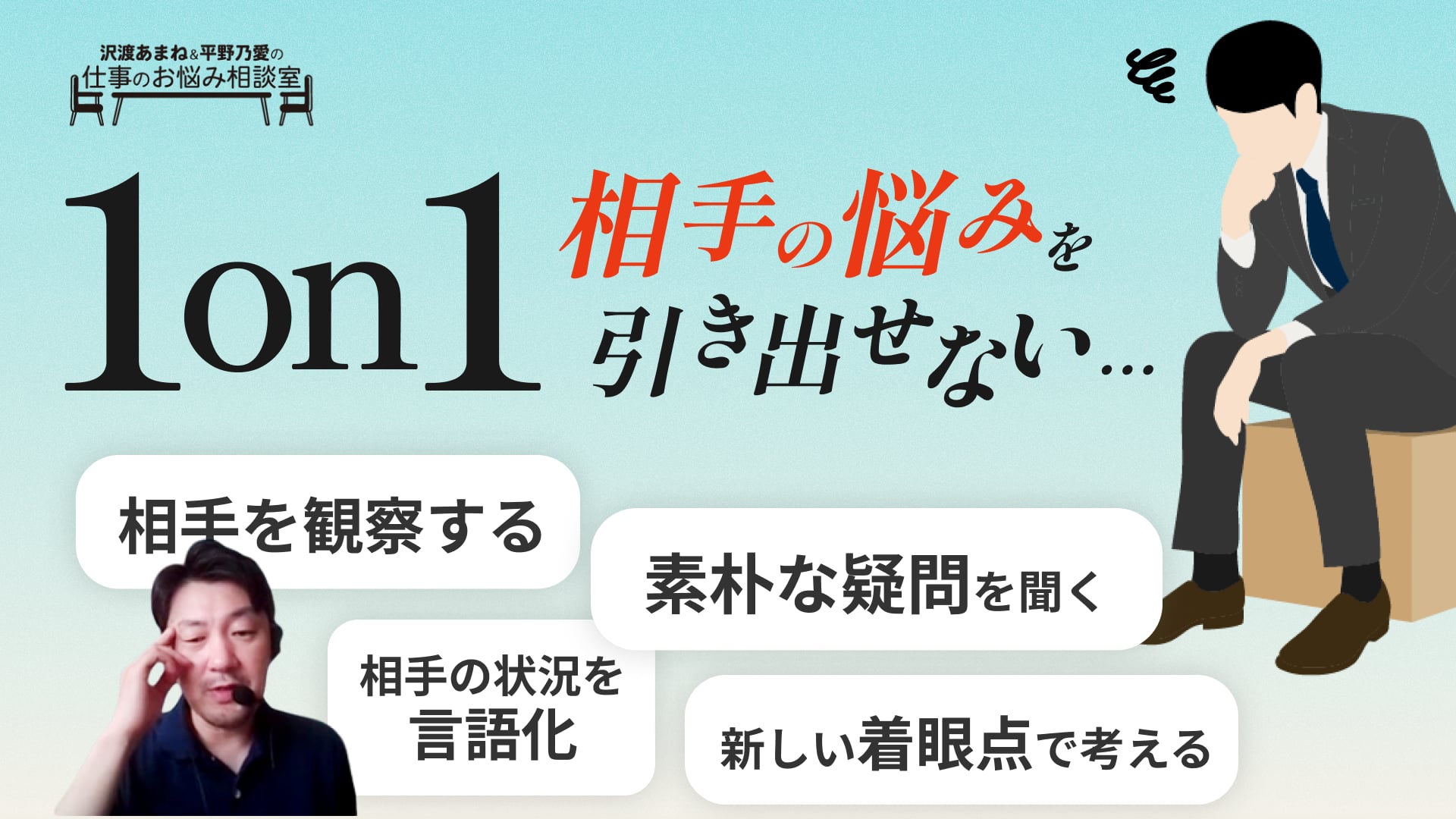 1on1このコンテンツでは、1on1をする側が心得るべきポイントや、どのようにすれば メンバーの悩みを引き出し、解決に導きやすくなるかを解説しています。