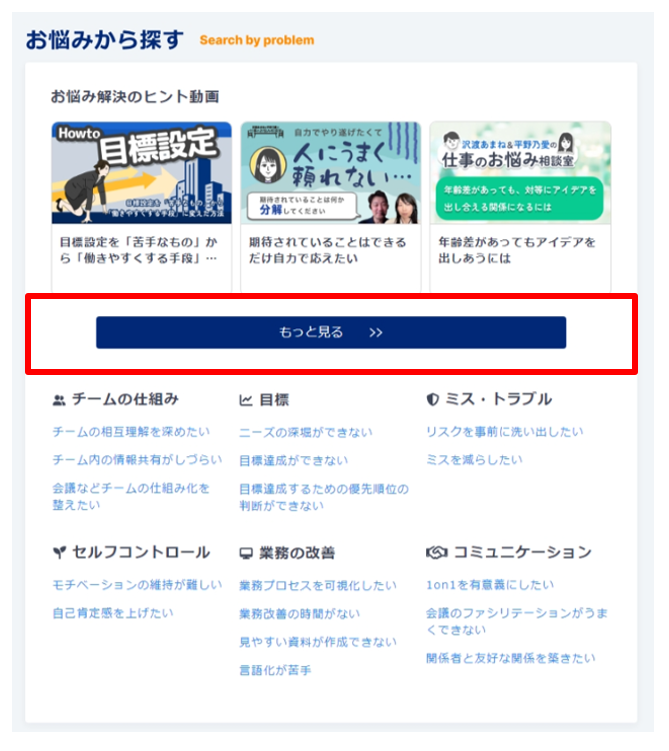 「 3 お悩みから探す」> 「もっと見る」ボタンをクリック