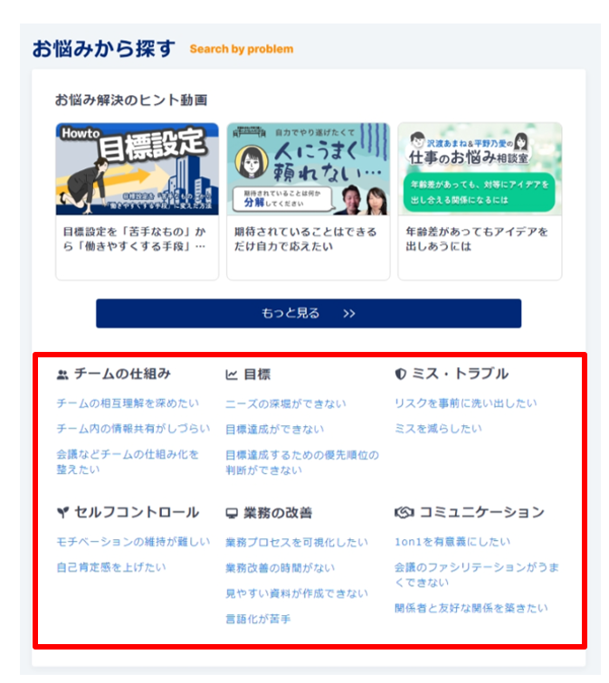 3 お悩みから探すよくある仕事のお悩みにお応えするコンテンツが見られます