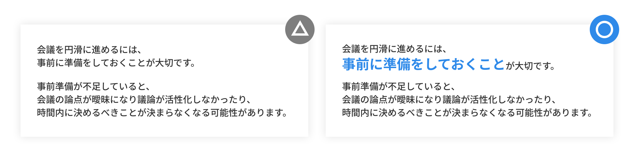 ③図解・アイコンを使用する、テキストに強弱をつけて視覚的に伝える