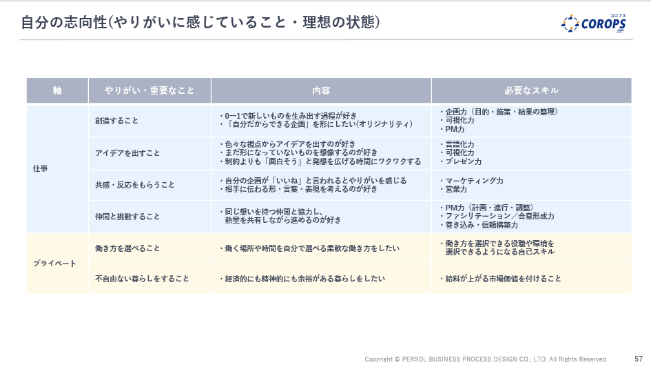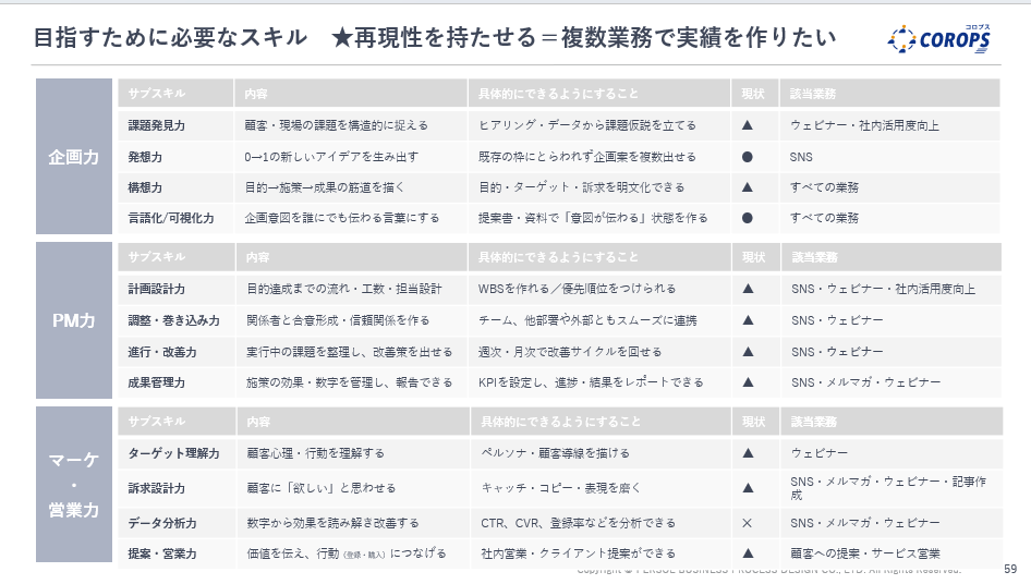 最後に、各スキルの中から今自分が足りないものを選択、それに対して紐づく業務で