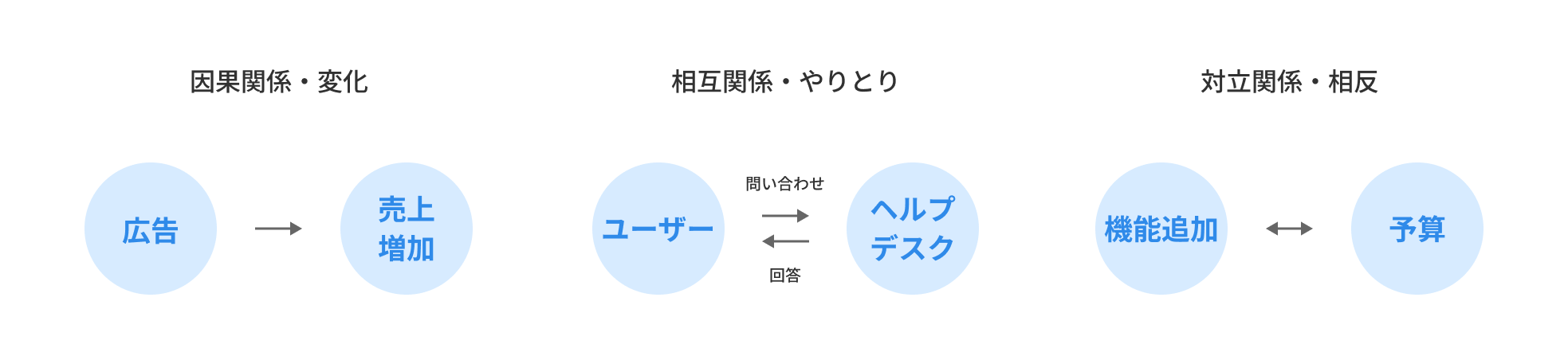 例えば、複数要素の関係性を表現するにはどのような図解が最適なのかや、