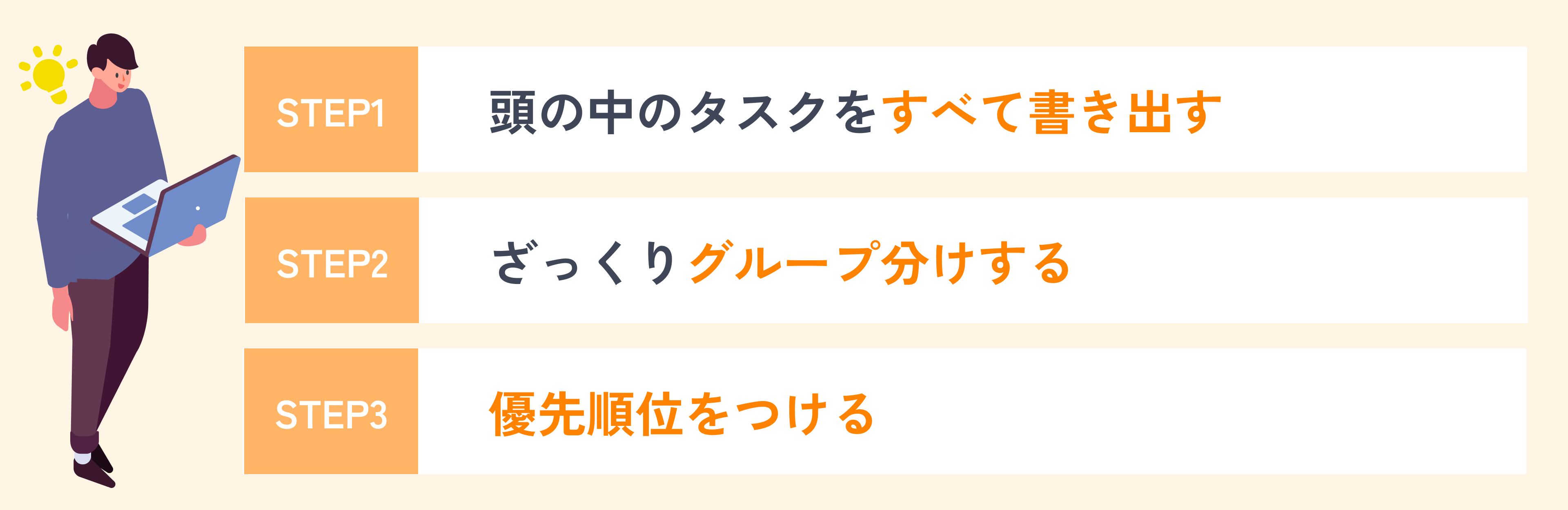 これだけで重要な仕事が見えてきて、焦りやストレスが減ります。