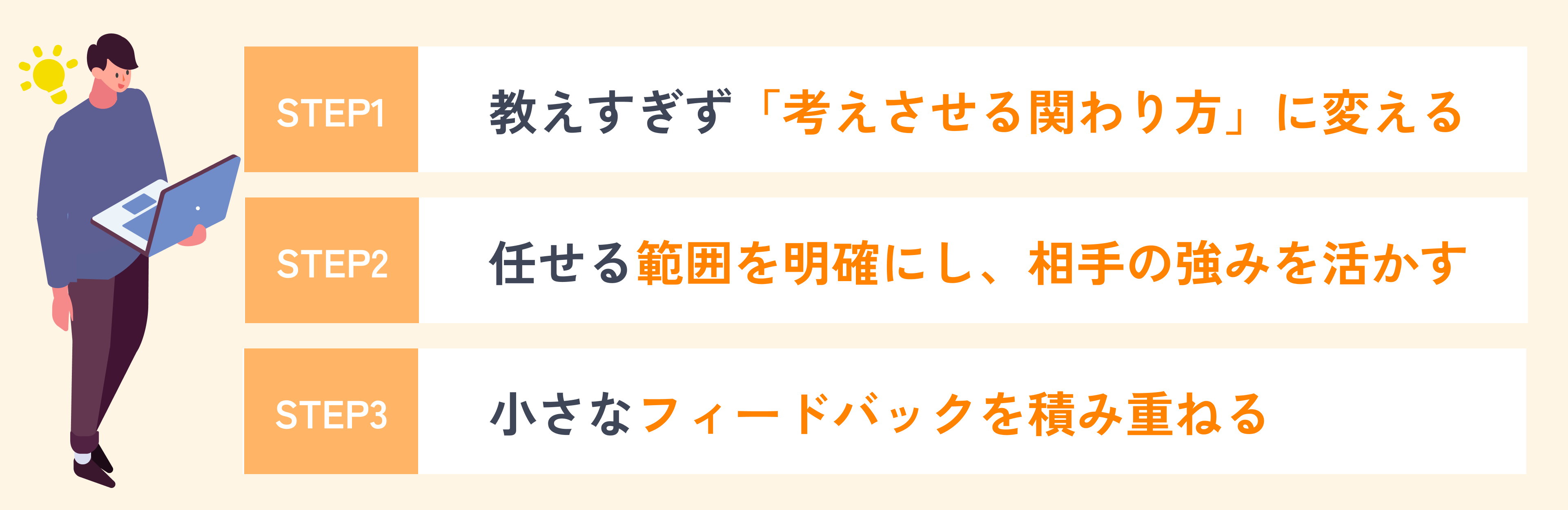 「この仕事、どう進めるのが良いと思う?」と尋ね、考える余白を与えましょう。