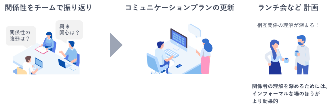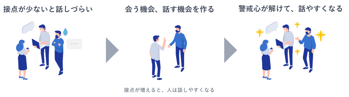 加えて、日常的な接点だけではなく、より深い関係性を構築するためには普段とは別の交流の場を設けるとより効果的です。