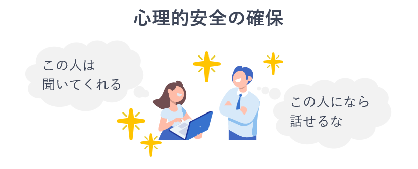 1on1等で時間を確保し、まずは「何でも言ってよい雰囲気」を作り出し聴く態勢を整えてください。