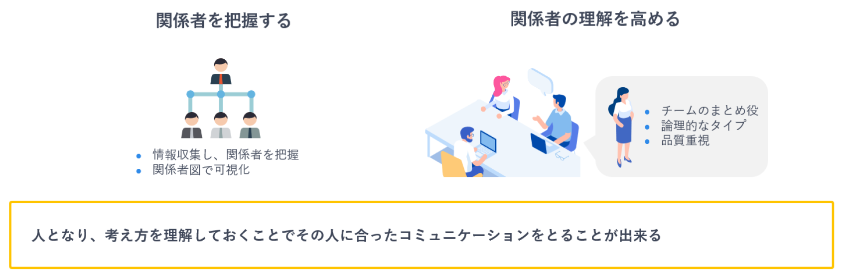 関係者を把握した後は、理解を深めるために関係者それぞれの特徴を掴んでいきましょう。