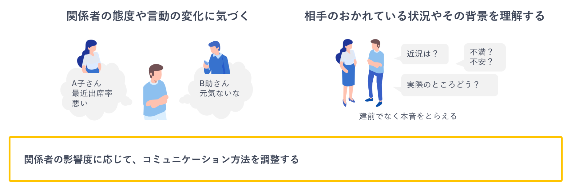 定期的なコミュニケーションの中で「自分はこう感じているが、合っているか?」と確認し、